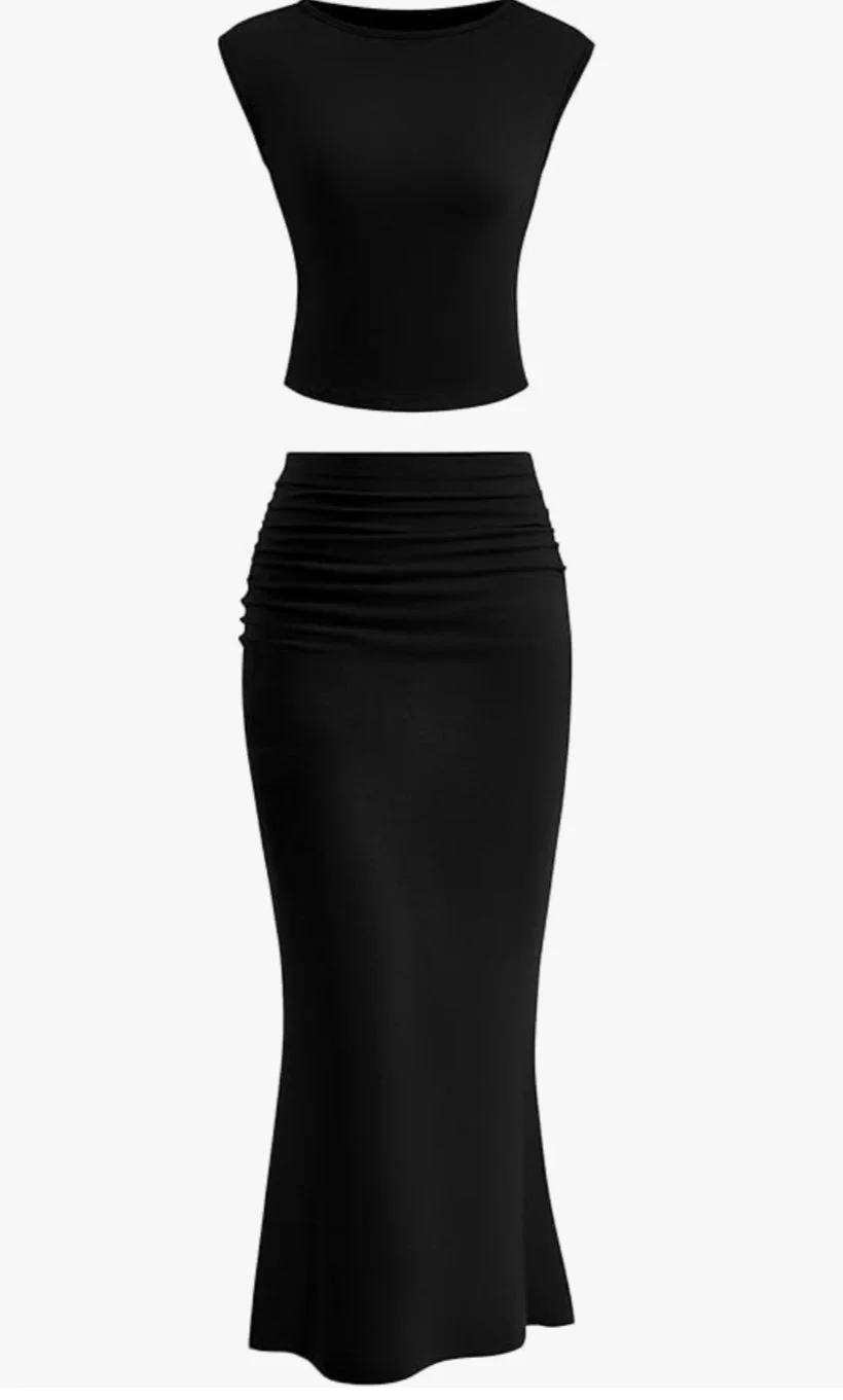 Cap Sleeve Crop Tops Ruched Long Maxi Skirt